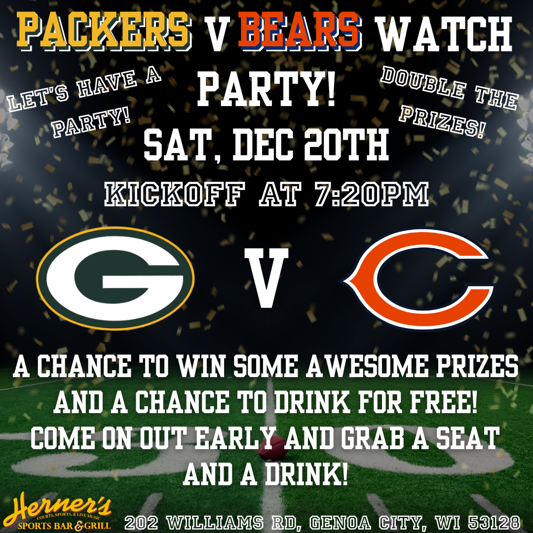 Sat, Dec 20th - Packers V Bears Watch Party - 7PM